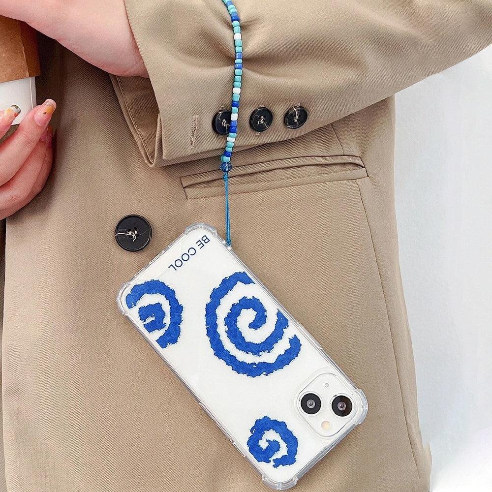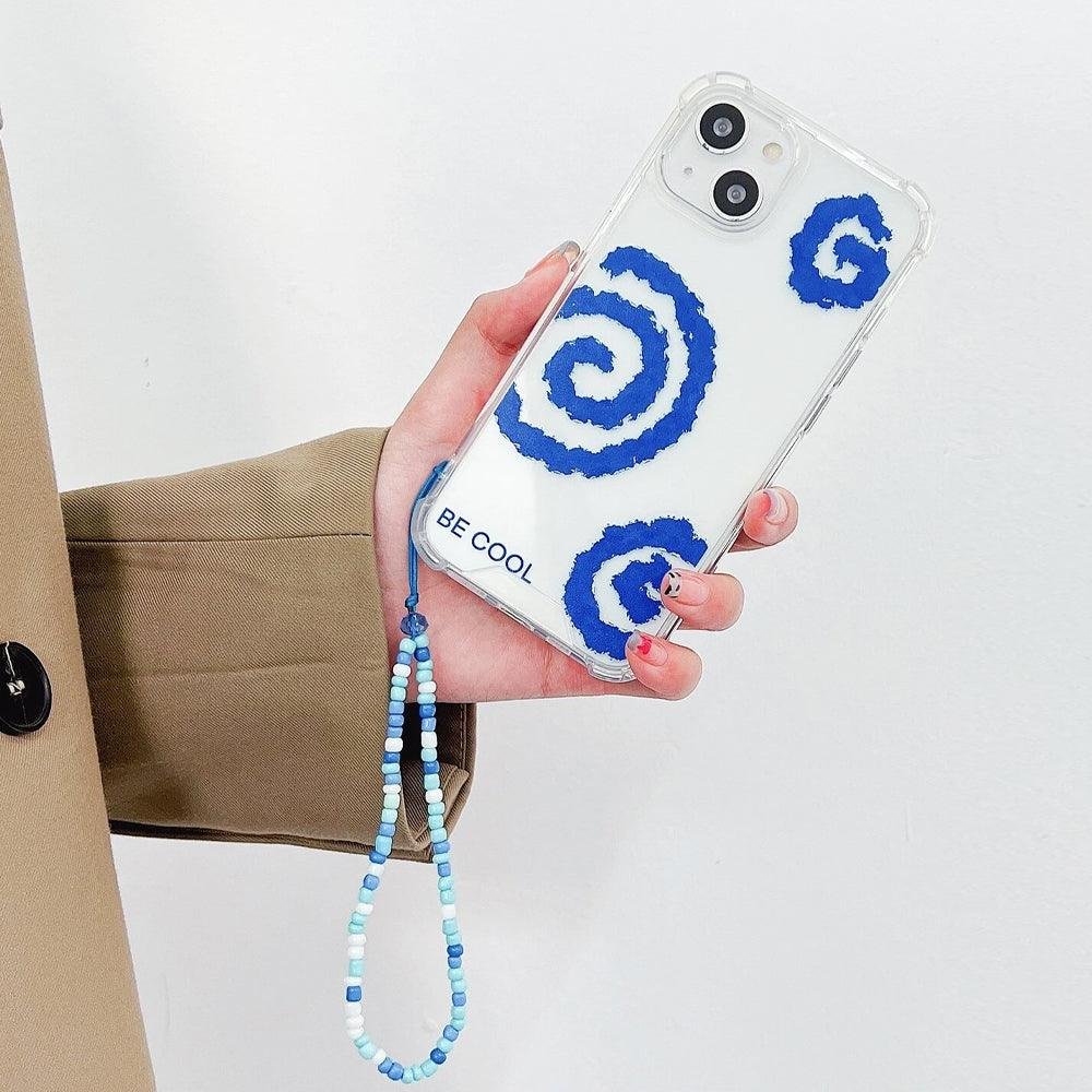 Blue Swirl Pattern Clear Phone Cover With Lanyard iPhone