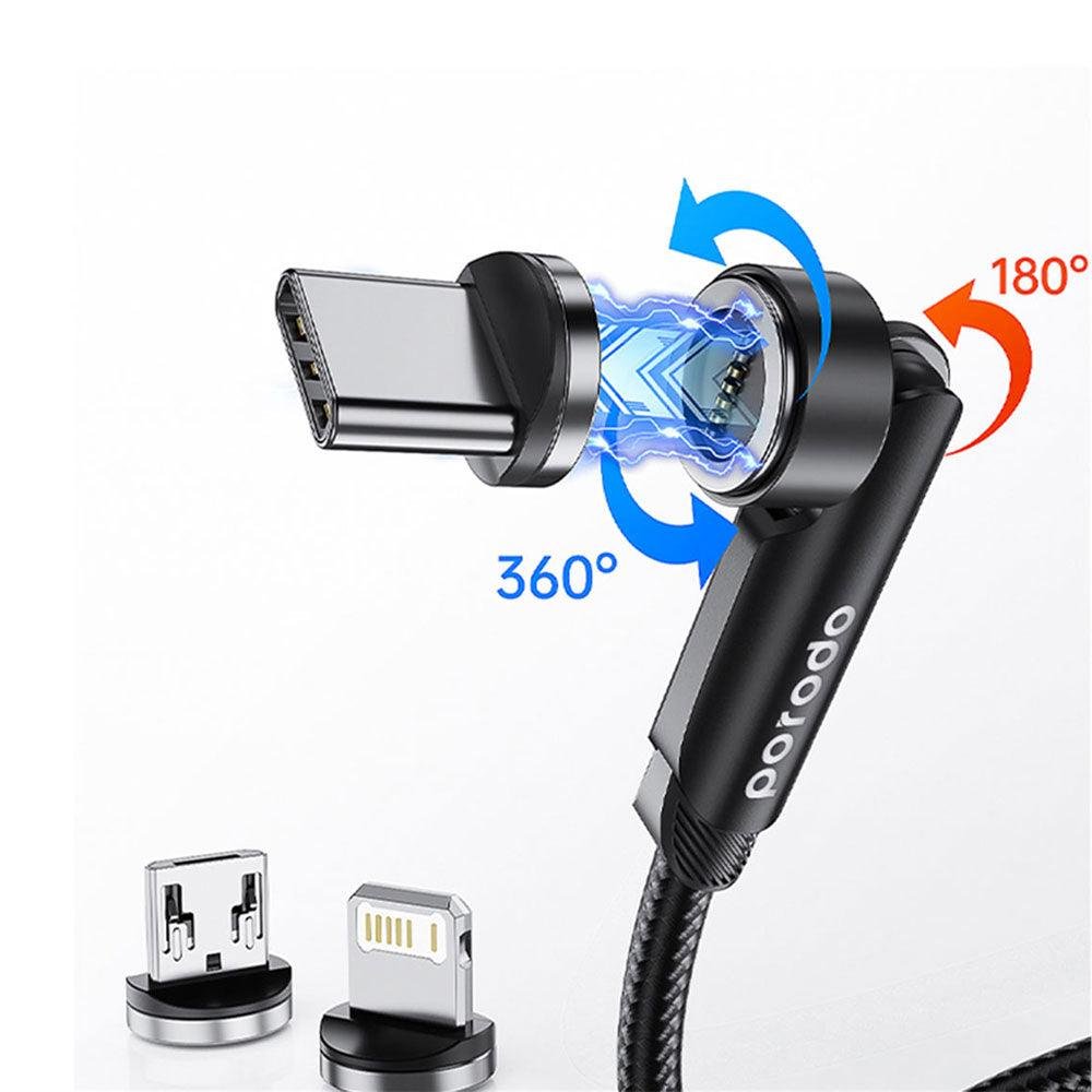 SKU: porodo-pd-31mgc-bk-usb-to-type-c-micro-lightning-3in1-rotating-connector-magnetic-cable-1m