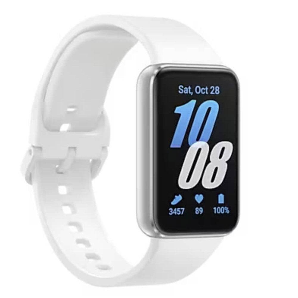 Samsung Galaxy Fit3 SM-R390 Band Silver Aluminum Case With White Strap
