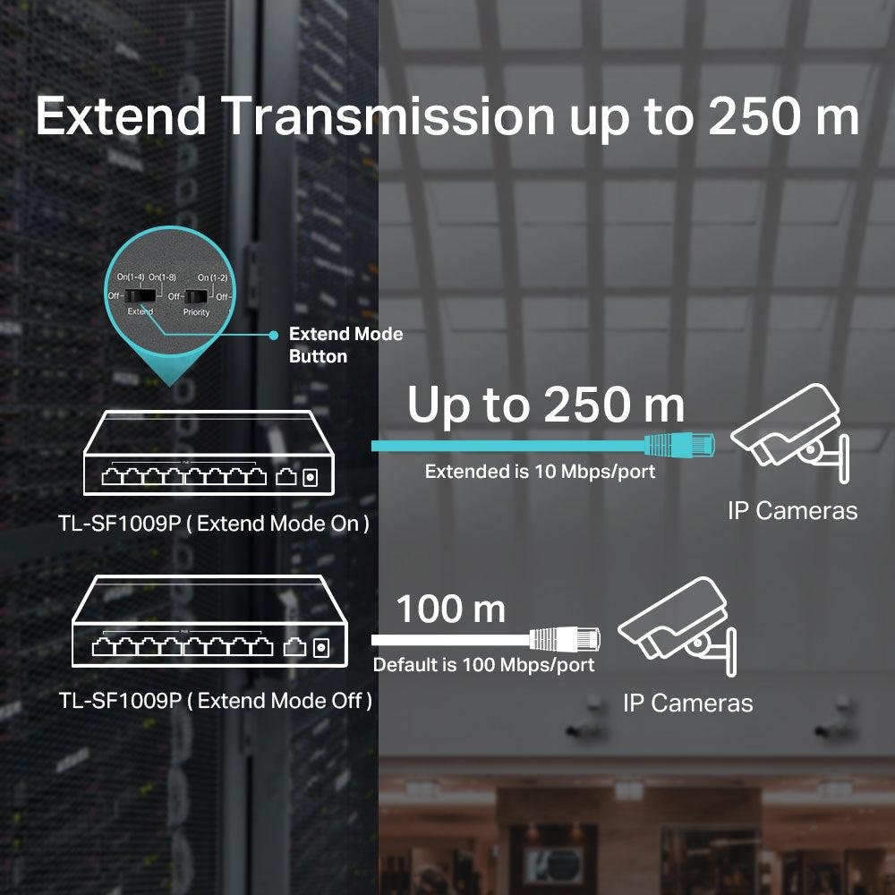 TP-Link TL-SF1009P Unmanaged Desktop PoE Switch 1 Port 10/100Mbps + 8 Port PoE+